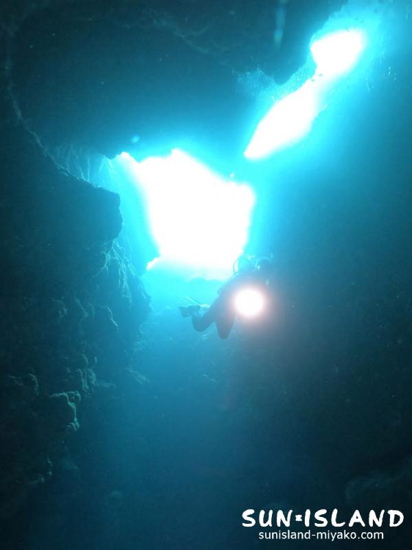 2本目は伊良部島ダイビングスポットの中で、ダイナミックな穴の造形が楽しめる「クロスホール」へ。