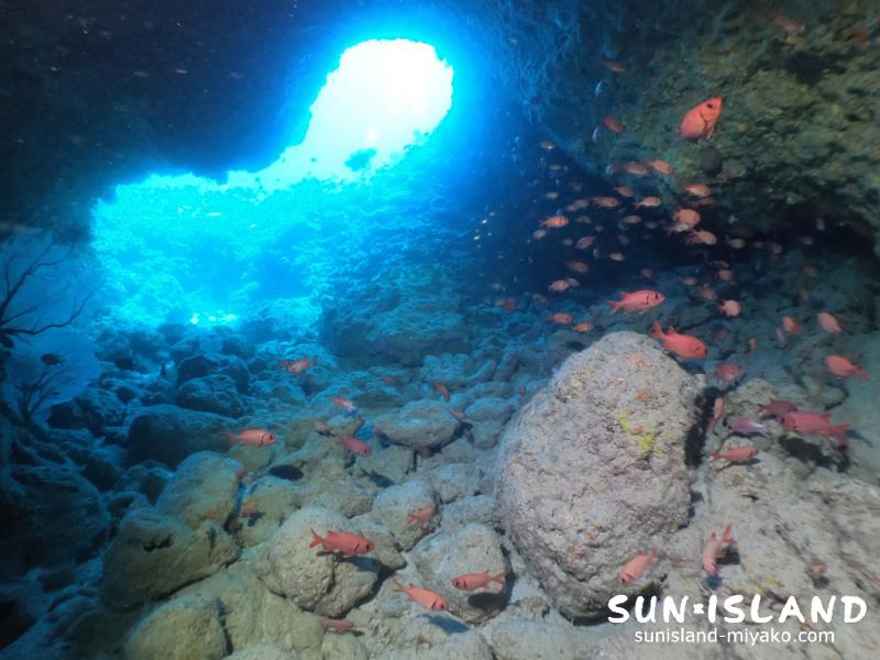 宮古島ダイビングスポットの中に「ホール」という空間にいくつか穴があく形状の地形があります。