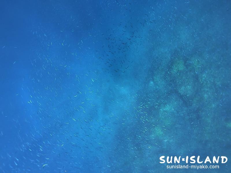 透視度20~25mと視界良好なブルーウオーターを移動してると、キラキラの輝くキビナゴの集団に遭遇・囲まれちゃった~。