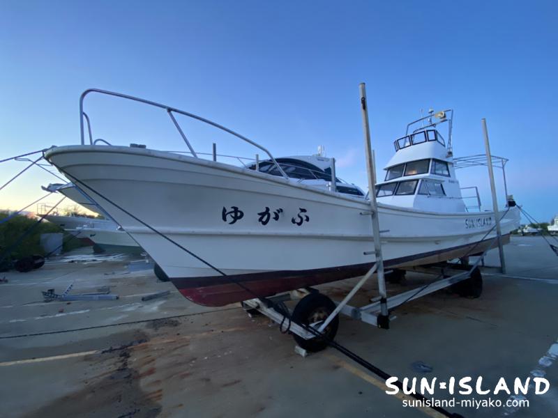 昨日夕方、満潮のタイミングに合わせ船を上架しました。