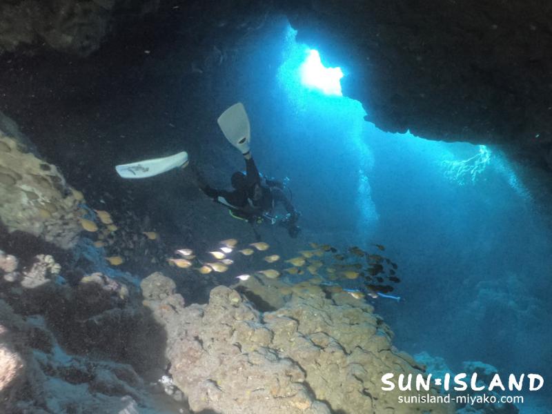 レジャー・ダイビングで全長20mほどのギリギリご案内できるカバーンエリア。