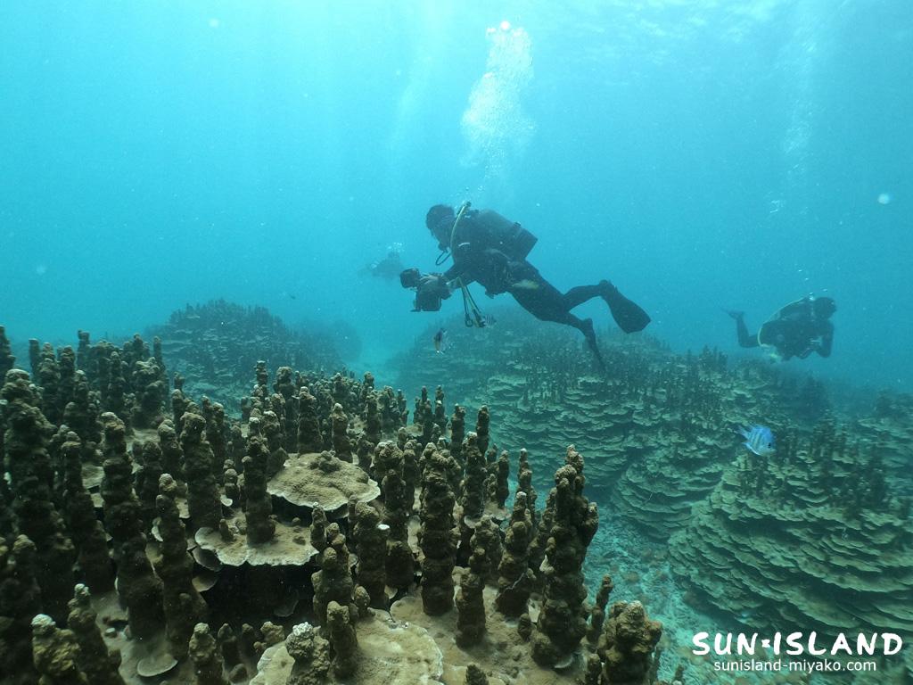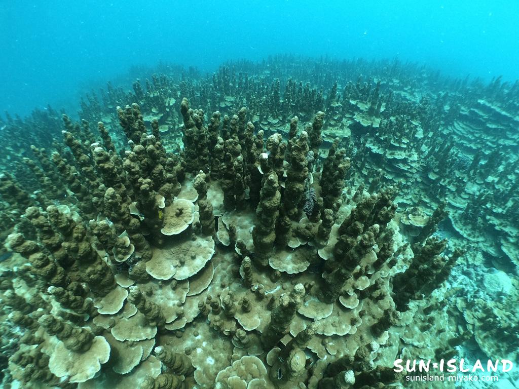 この群生は、直径20mほどあり、宮古島の既存のダイビングスポットではお目にかかることができません。