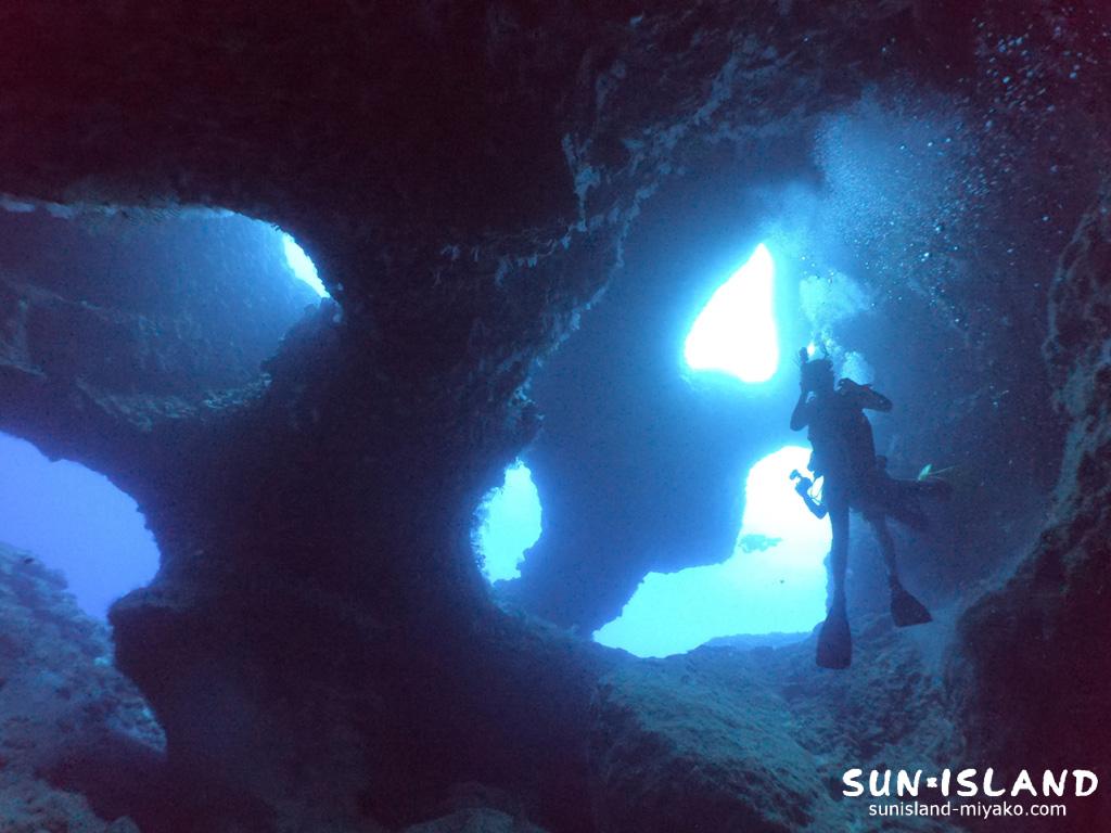 やはり複雑に入り組む穴の造形美、このダイビングスポットはイケてますねー。