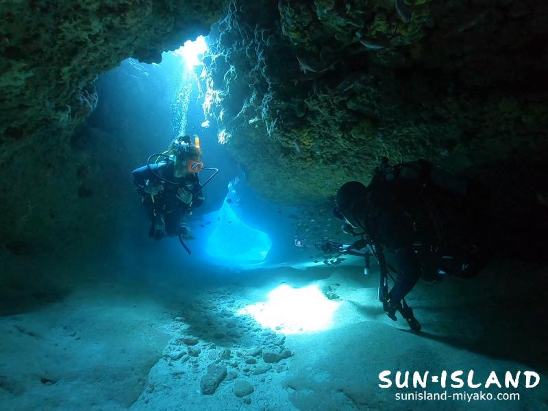 お昼1番に入ったこちらのポイント。太陽が真上に移動し、日差しがダイレクトに当たり、洞窟内はキラッキラ。