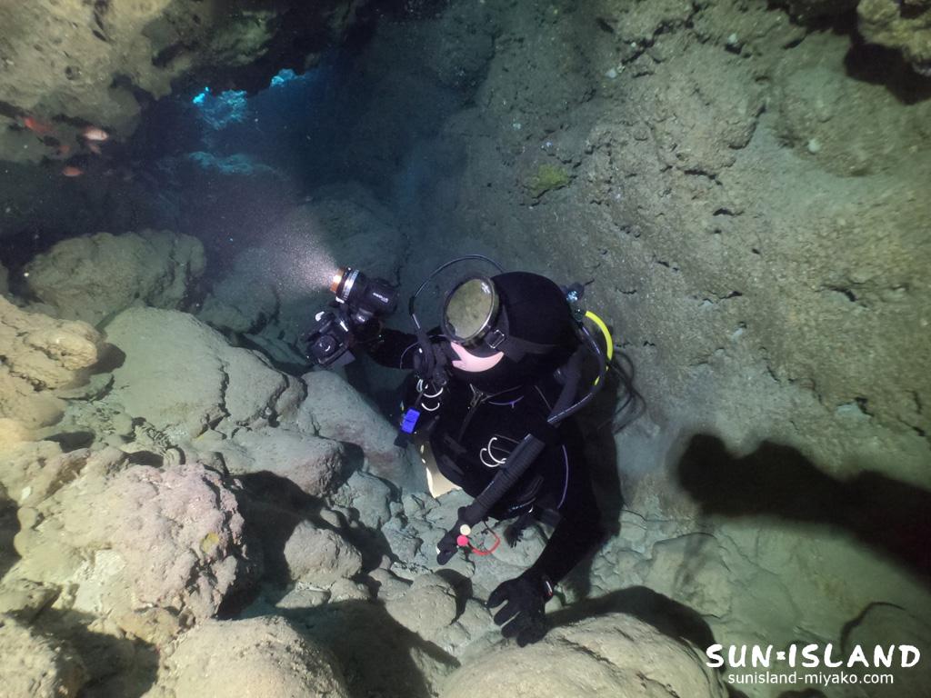 薄暗いカバーンエリアを水中ライトの灯りを頼りに進み到達したのは・・・