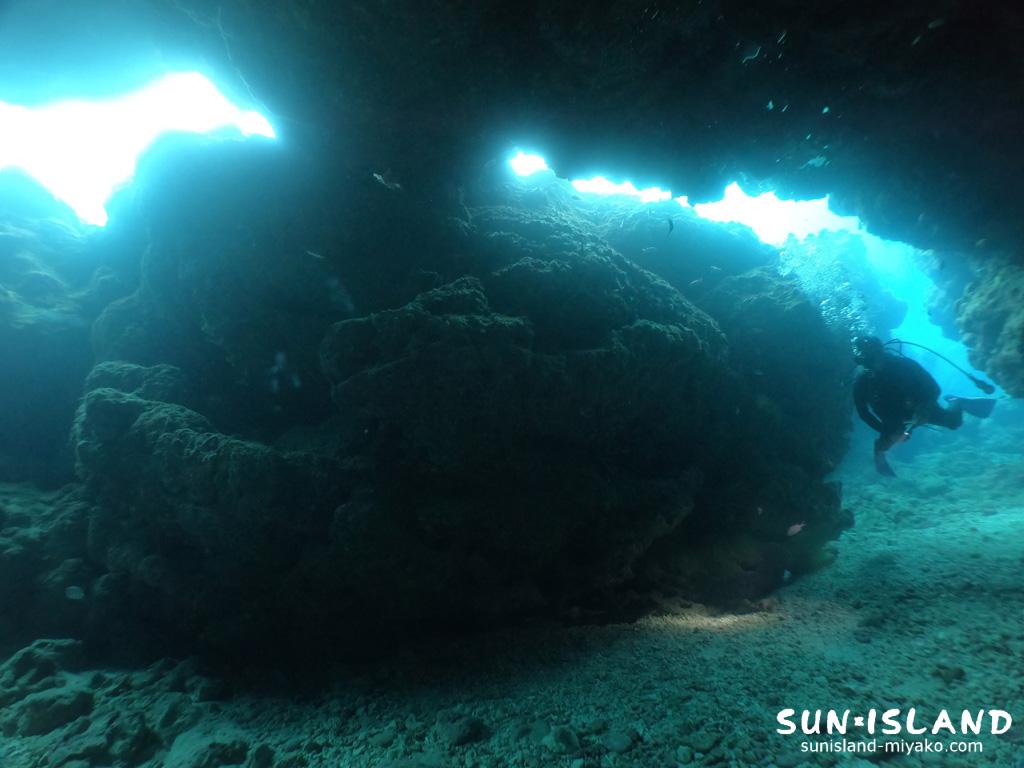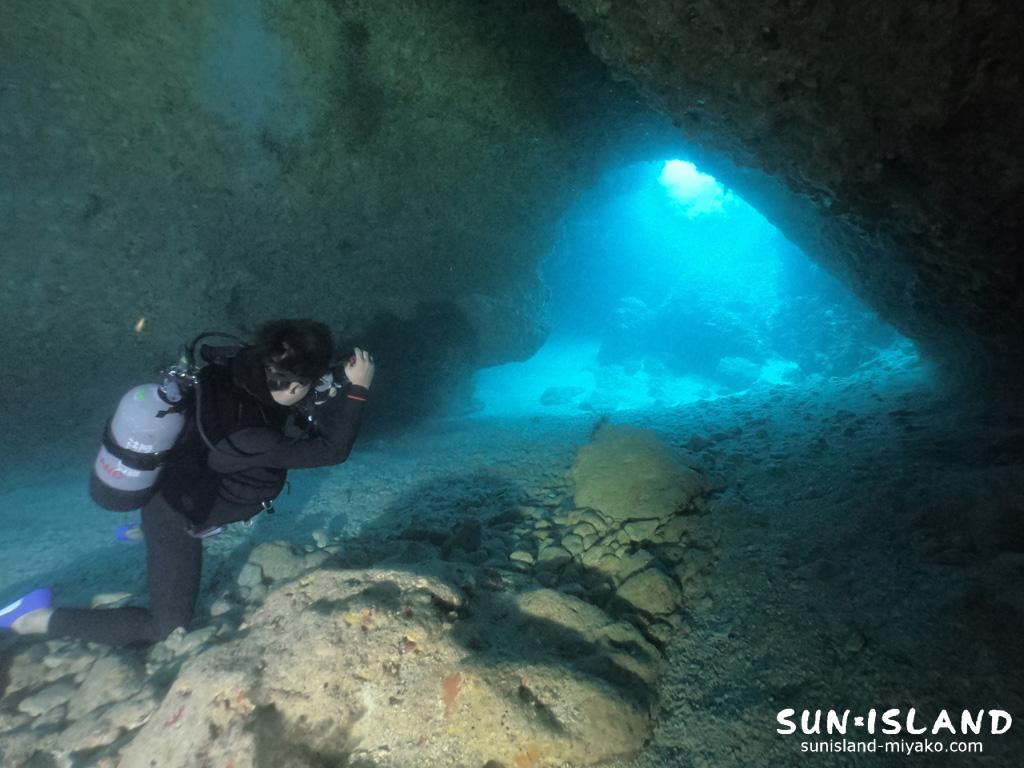 昨日潜った宮古島三大地形スポット『アントニガウディ』とまた雰囲気がガラッとことなるこのホールの造形。