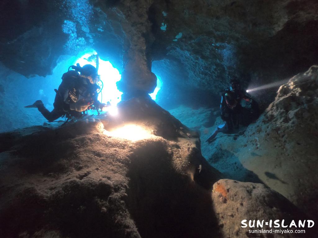 洞窟内に侵入するタイミングで日差しが降り注ぎ明暗のコントラスト、そしてそこに舞うアカマツカサやハタンポが造形に華を添えてました。