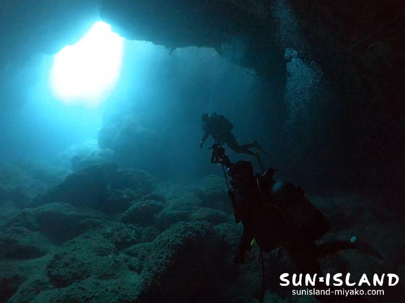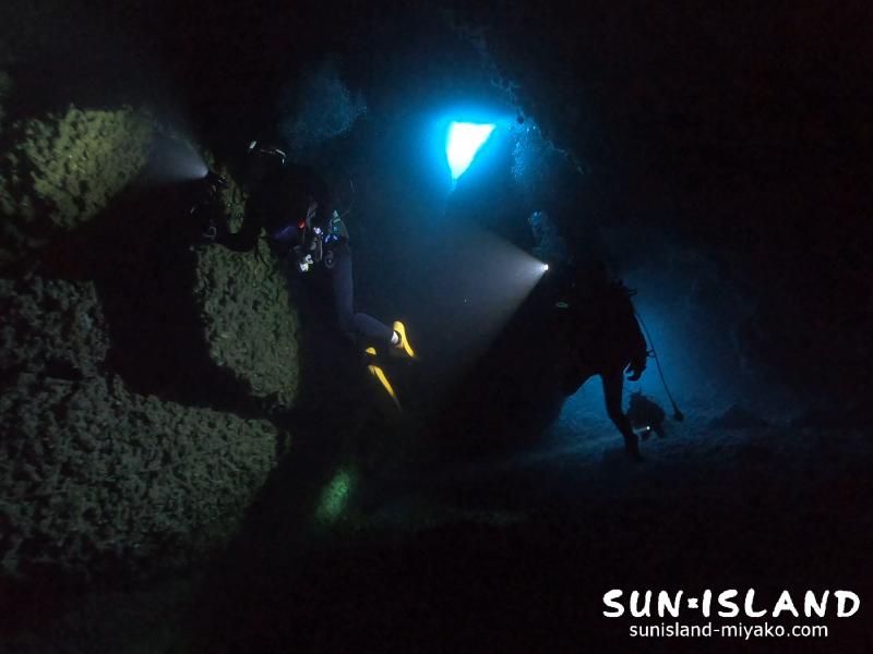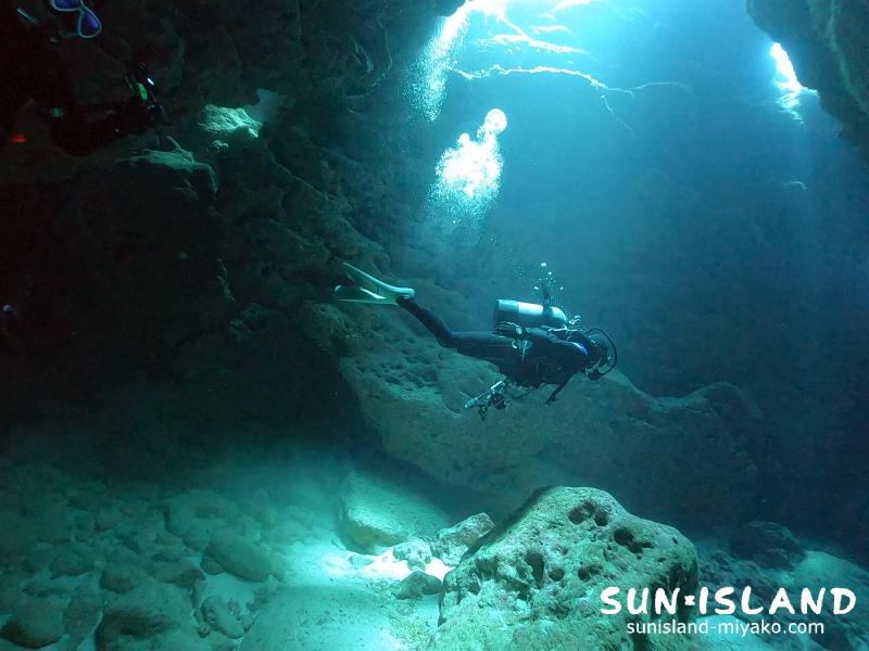 複雑な地形をドキドキしながらライトの光を頼りに進み。サンサンと降り注ぐ光の中をスィーと泳ぎ。
