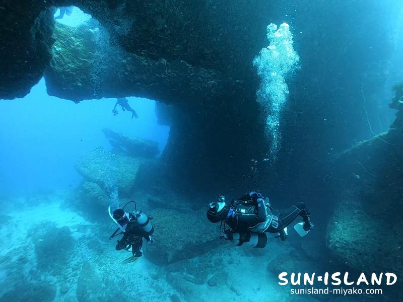 ダイナミックなアーチを目の前に、初めての宮古島ダイビングでも、目をワイドに視野を広ーくされて上手な地形ダイビングの楽しみ方を既にマスターされているお2人です^^
