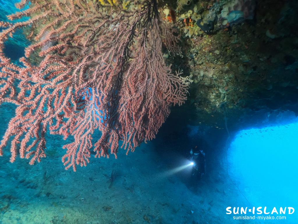 ここのアーチの壁面にも下地島ダイビングスポット「魔女の部屋」同様にイソバナが群生してます。