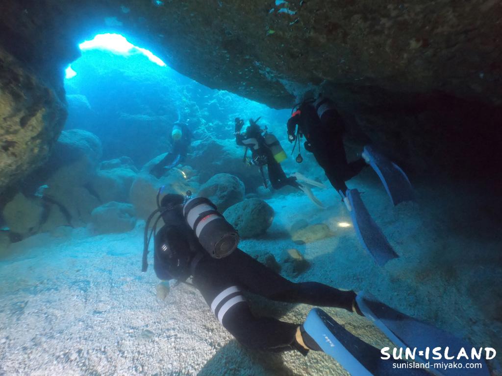 水深も浅瀬く、初心者の方から宮古島ダイビングらしい地形ダイビングが楽しめるのもいいね。
