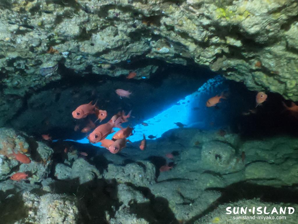 2本目は、宮古島ダイビングスポット・ポイントのなかで、手狭で長い洞窟が楽しめる『ワープホール』へ。