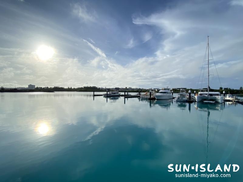 いつも出港している港内は全くの無風で、あたかも明日からの時化を予測しているようで不気味なべた凪。台風1つと熱帯低気圧が3つ宮古島近海で発生しており、鏡の様に穏やかすぎる水面を見ても素直に喜べません;