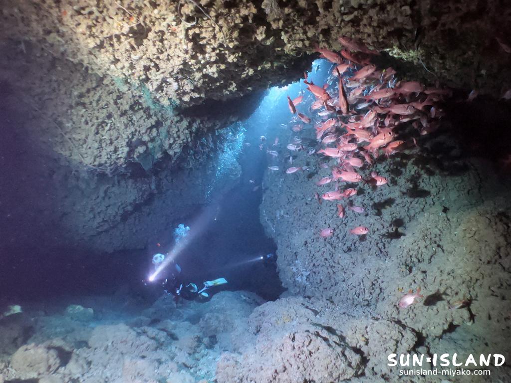 例年これから水温は徐々に下がりはじめますが、透視度は安定して25~30mほどになり、起伏に富むダイナミックな穴の造形も映えます。