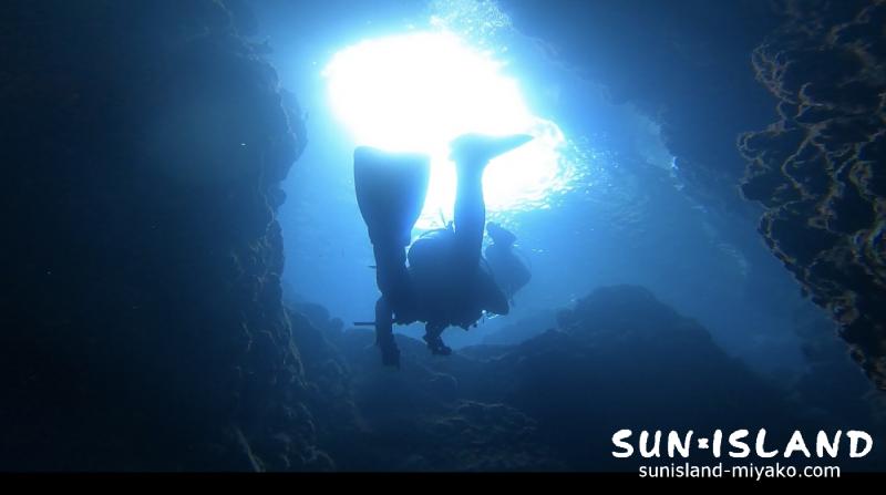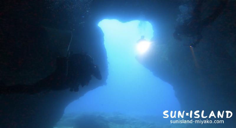 水深12mにある入り口は近くまでいかないと「大丈夫?」ってくらい真っ暗。