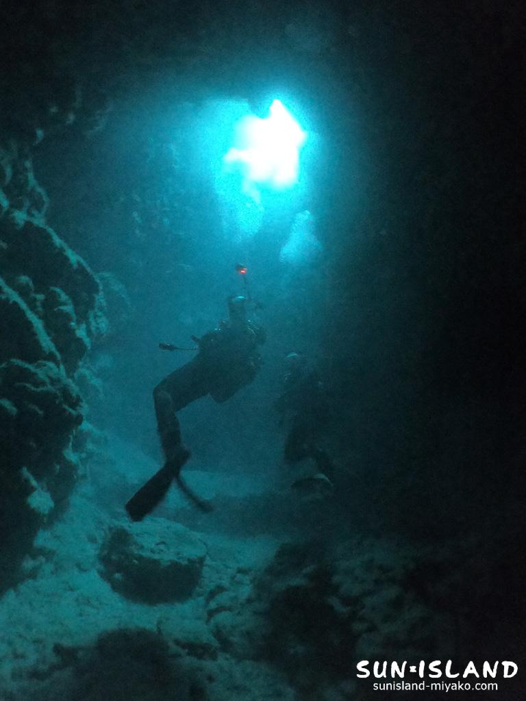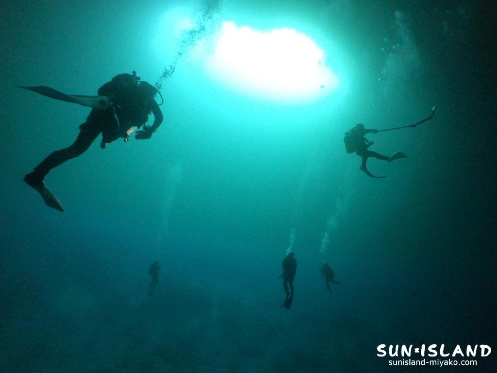 穴自体が横幅20m x 縦幅15mほどあり、視野を広く周りをじっくり見渡すことにより様変わりする穴の造形がダイバーの心をぐっと離さない。