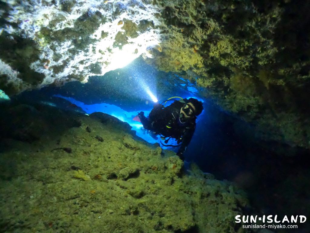 沖縄県の中でも特徴的な地形や穴の造形を楽しむことができる宮古島ダイビングポイントのなかで、探検してる感が半端なく感じられる中・上級者向けポイント。