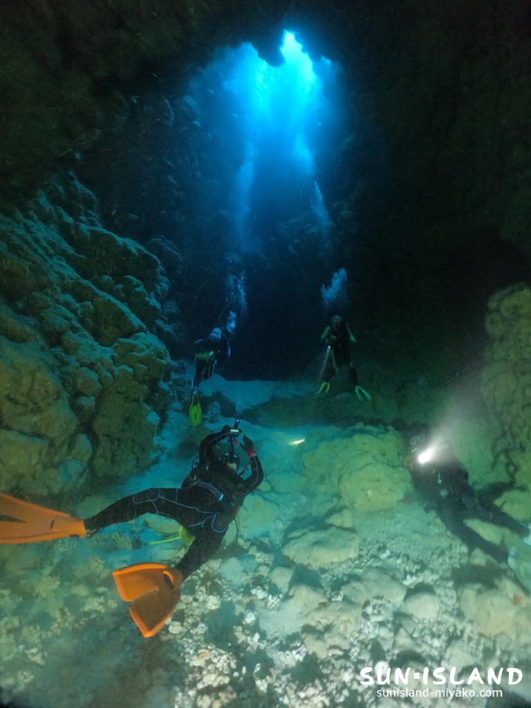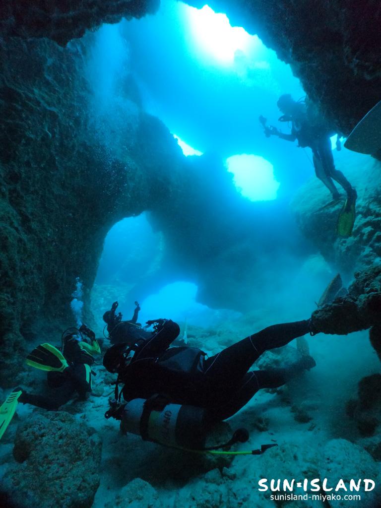 起伏に富むダイナミックな穴の造形がウリの下地島周辺のダイビングは。