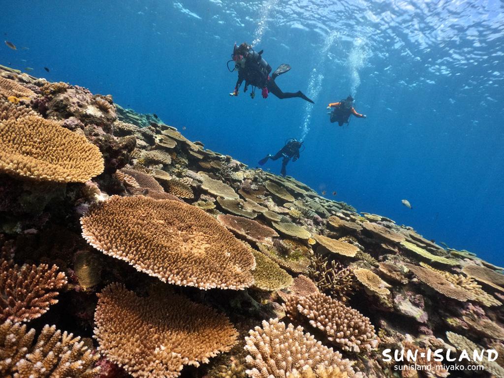 地形・フィッシュウオッチング、そしてサンゴの海が広がる夏の宮古島ダイビングは、見所いっぱいだね♪