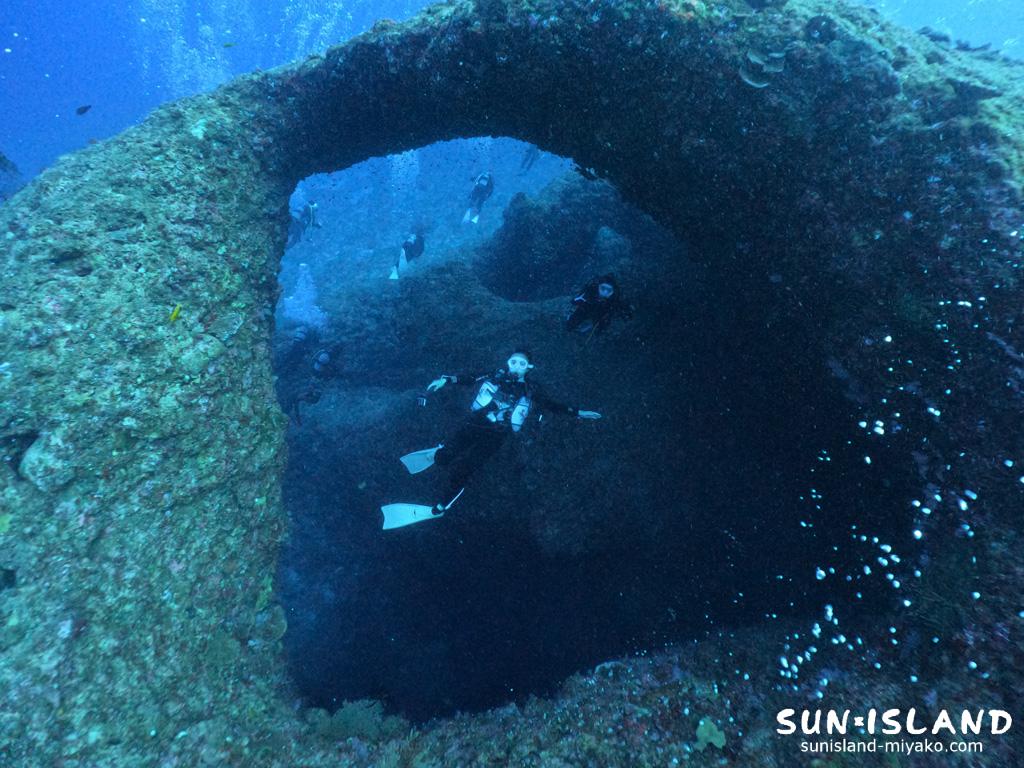 ダイビング中に一度浮上できるなんて、不思議な感じですが、このようなポイントは下地島ですと『通り池』『マリンレイク』、伊良部島ですと『ツインホール』『白鳥ホール』等いくつかあります。