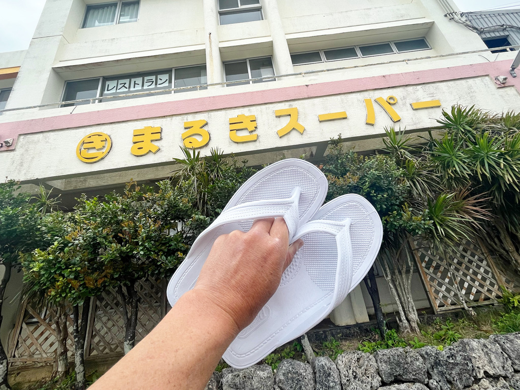 最近、めちゃめちゃ人気で且つ値段も上がり希望カラー・サイズを購入することができなくなってきたので、界隈のなかで値段も安い伊良部島にある『まるきスーパー』で昨年ホワイト(LL)サイズ3足注文し、入荷したということで買ってきました!