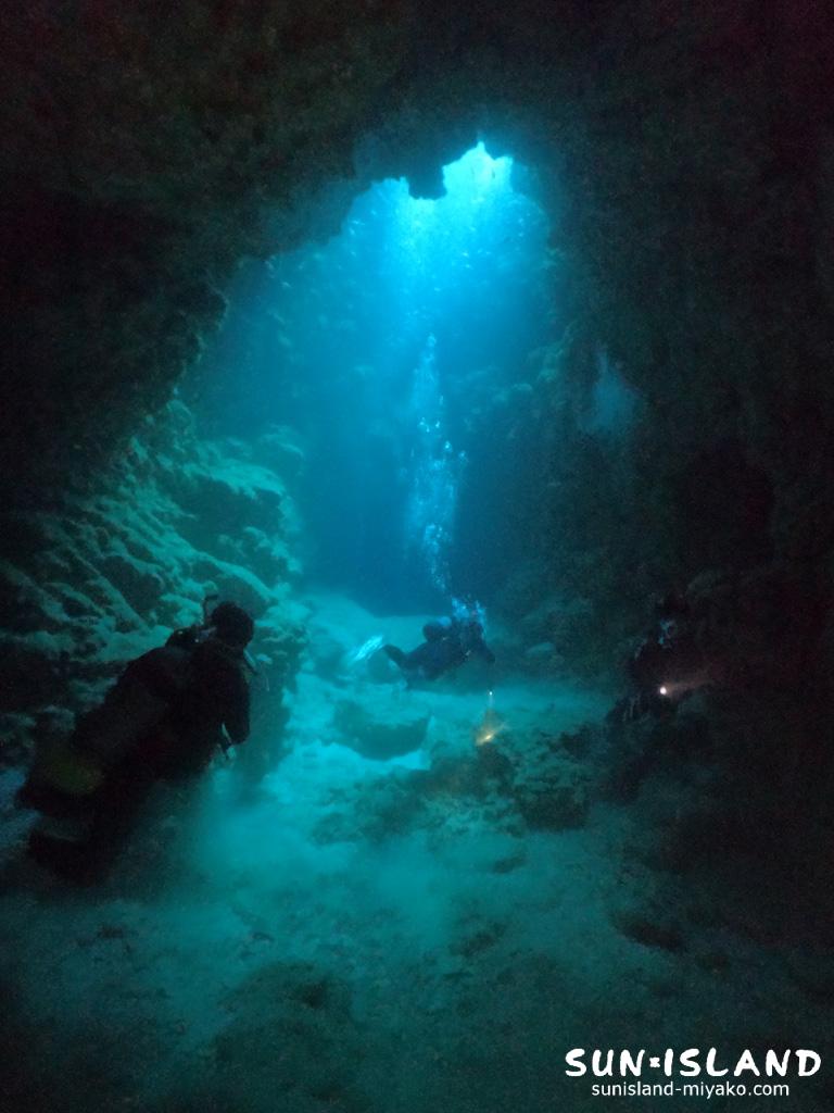 そんな不思議な体験ができ、且つ穴が織りなす造形が宮古島ダイビングスポット・ポイントのなかでぴか一に気にいってるワタシ。池に浮上中に目にするサーモクライン・ケモクラインが織りなす青い緑から白濁した色味が不思議なかんじ。まさに『地形を楽しむなら宮古島ダイビング』と思える象徴的なダイビング体験ができますよー。地形好きなあなたにオススメ!