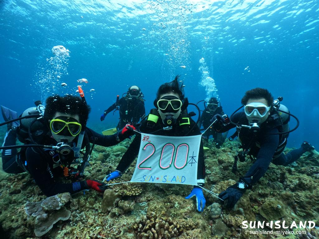 リピーターKさん、ダイビング2日目1ダイブ目『35ホール』で200本を迎えられました。