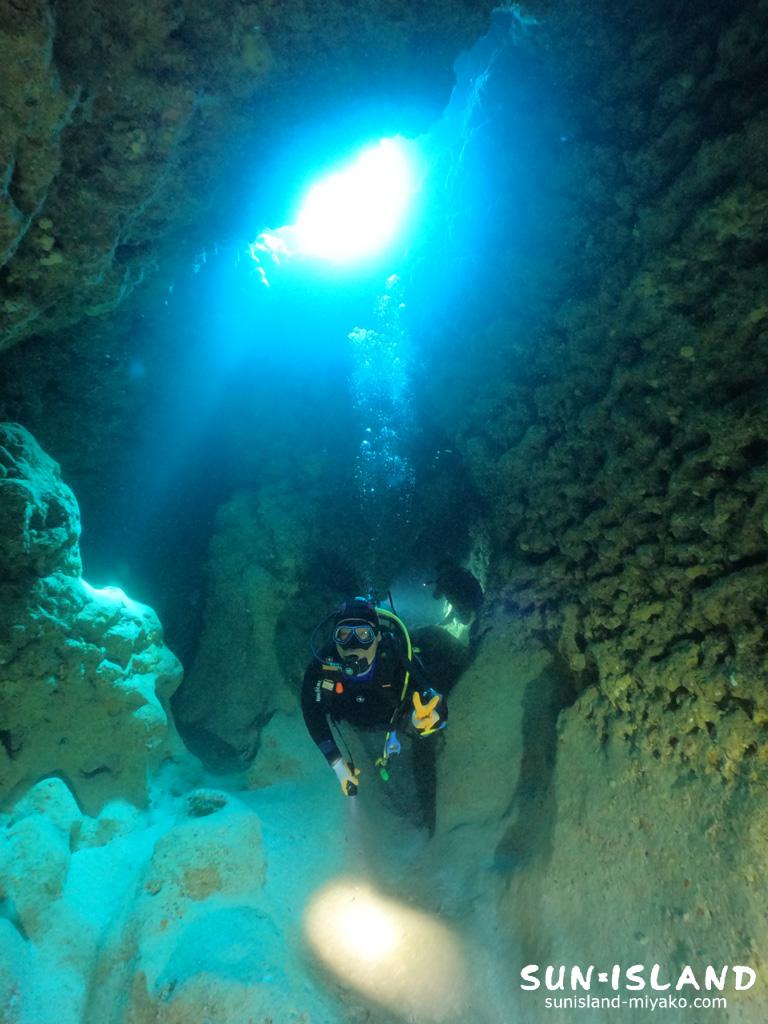 ここはなんといっても、1ダイブで洞窟を2回も楽しめちゃう所がいいですよね。しかもそこまで深くないので、経験本数が少ない方や久々に潜るよって人でも行きやすいポイントのではないでしょうか。
