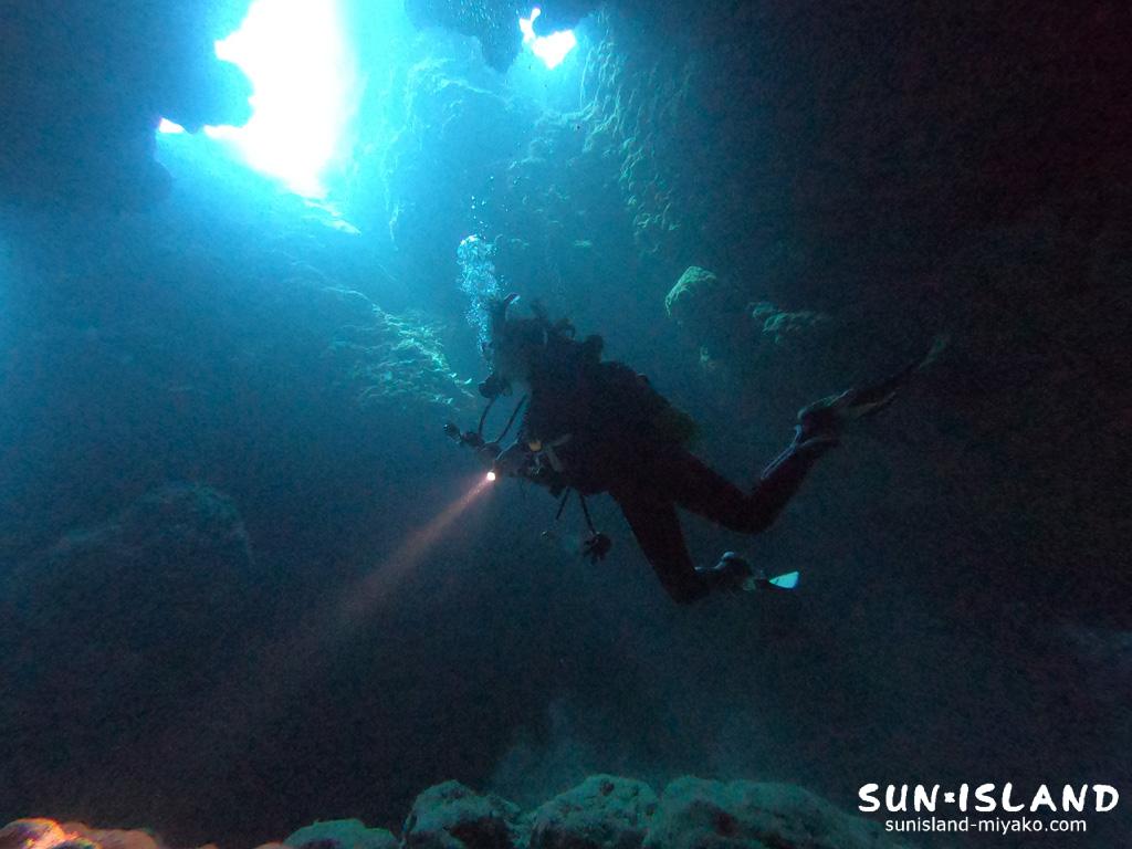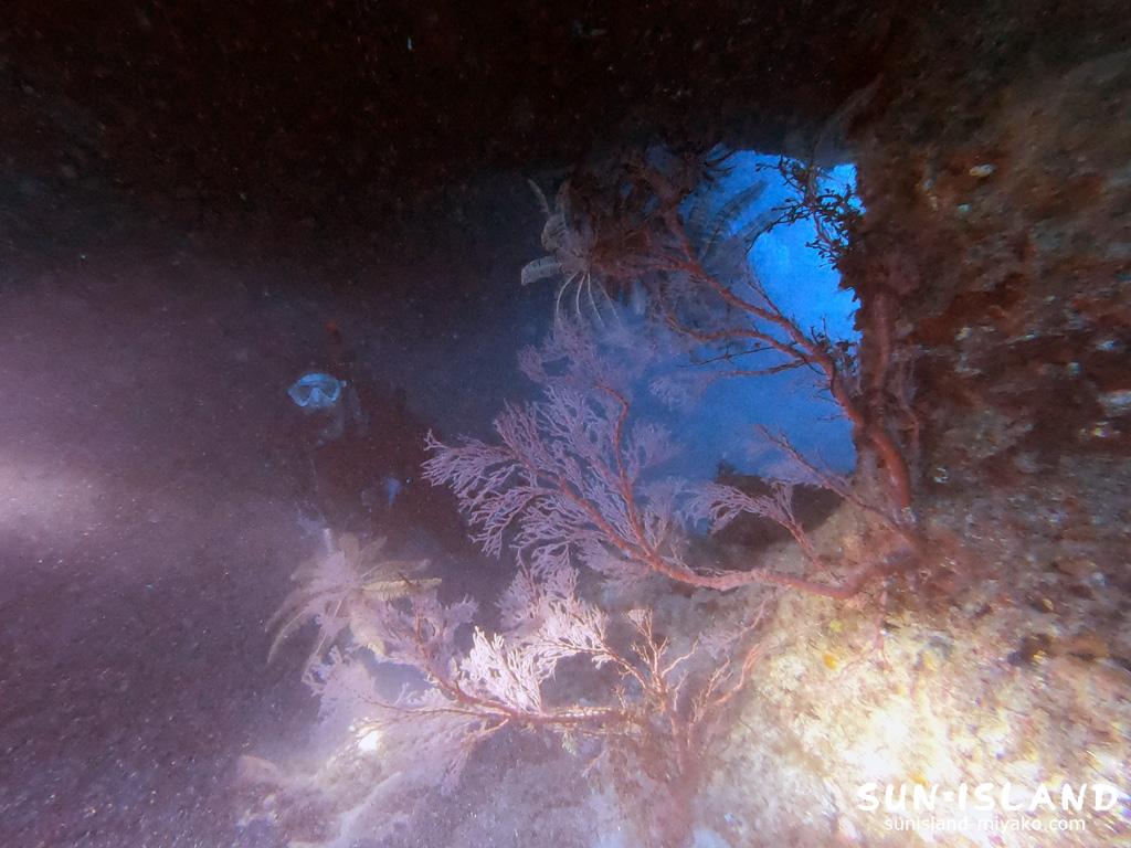 中の島チャネルはずっと真っ暗というわけではないので、洞窟に行くのは怖いなぁと思う方でも行きやすいと思いますね。水深もそこまで深くないので、回り方を考えれば、エアの減りが早い方でも十分に地形を楽しめちゃいますよ!☝