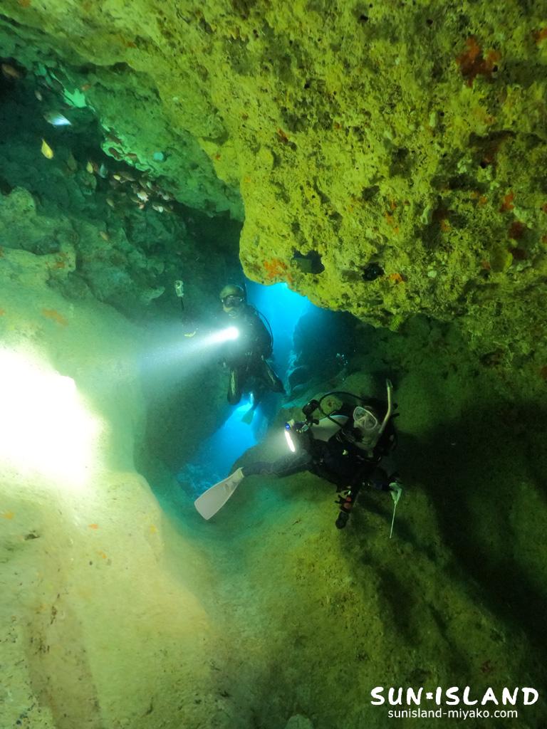 このポイントはそこまで水深が深くないので経験本数が多くない方や久しぶりのダイビングでも安心して洞窟を楽しめるかと思います!