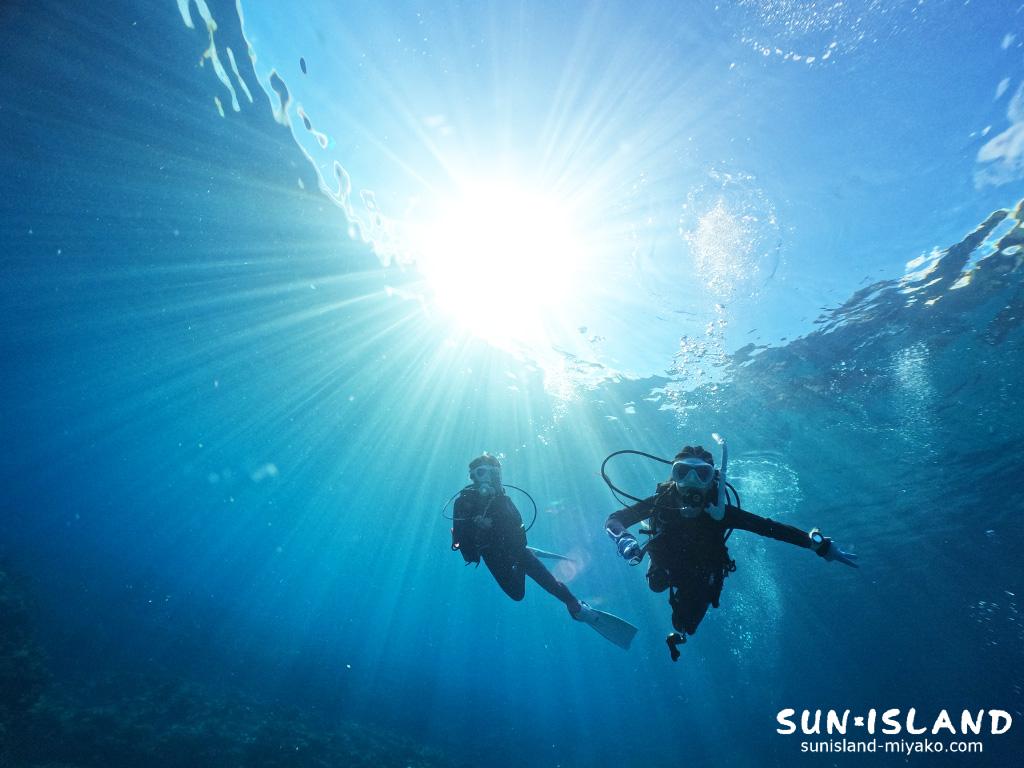 陽射しがある中での宮古島ダイビング、特に光系地形スポット・ポイントは最高です。