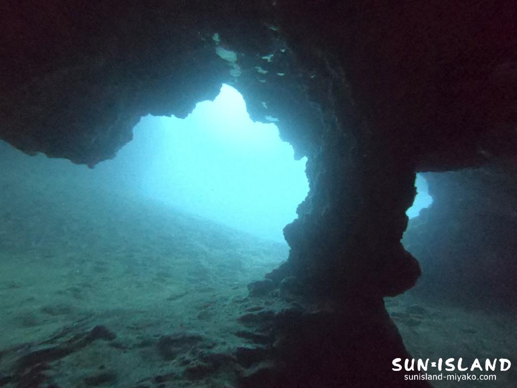 再潜降したらきた道を戻るのですが、洞窟の出入口の青みがほんとに綺麗!!