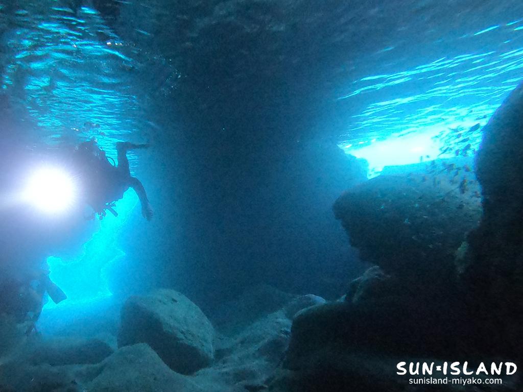 洞窟の中でワサワサと泳ぎ回っているハタンポにも注目ですね〜。光りが当たるたびにキラキラと輝いて、本当に綺麗です✨