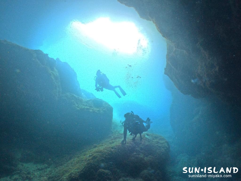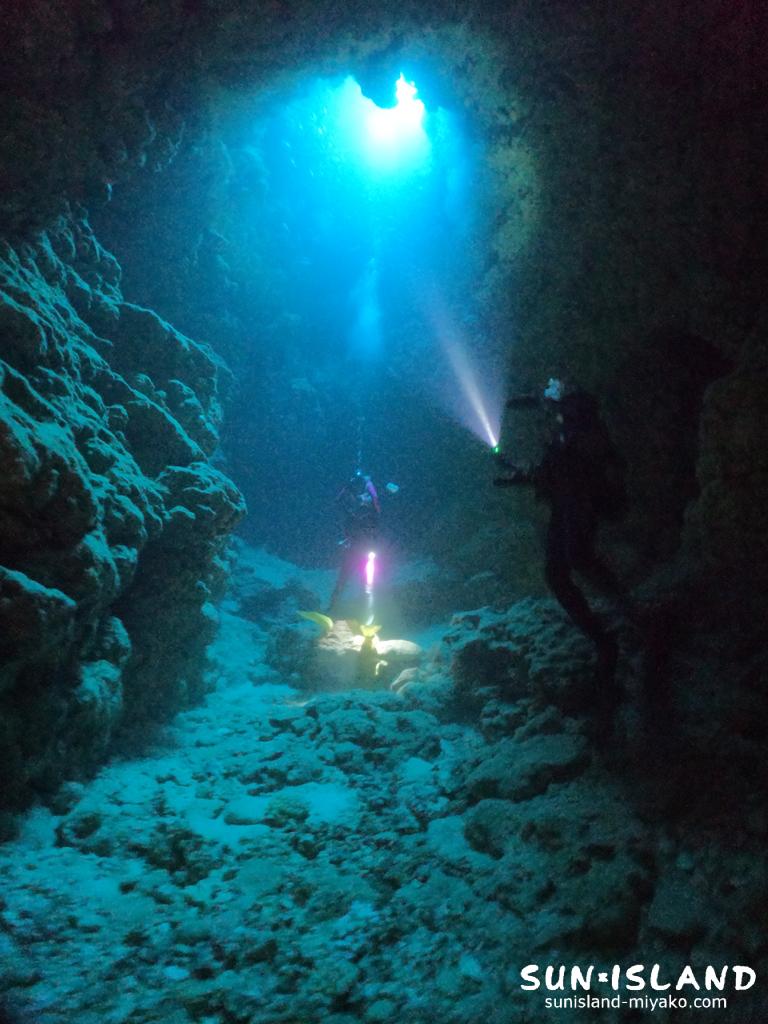 など、ご希望に沿えるよう下地島周辺の穴を絡めたダイビングスポット・ポイントで探検気分を存分に味わい造形や穴から射し込む光をご覧いただきました。