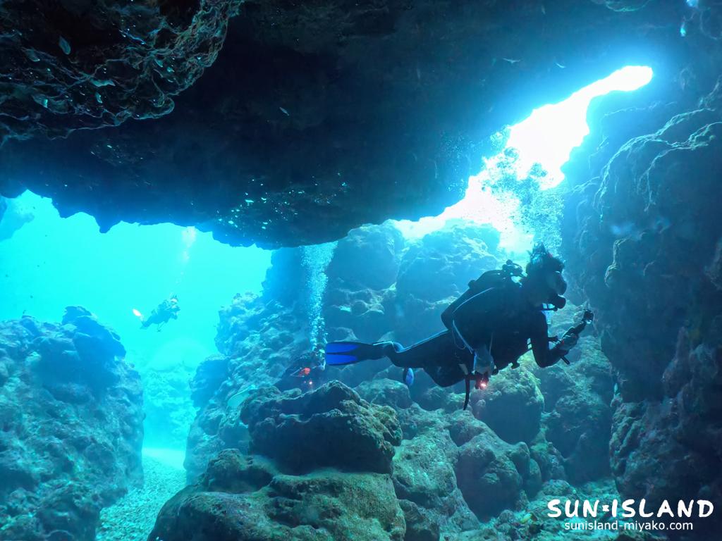 宮古島ダイビングスポット・ポイントの特徴でもある地形ダイビング。その形状はドーム・アーチ・ホール・ドロップオフ・クレパス・ケーブ様々。