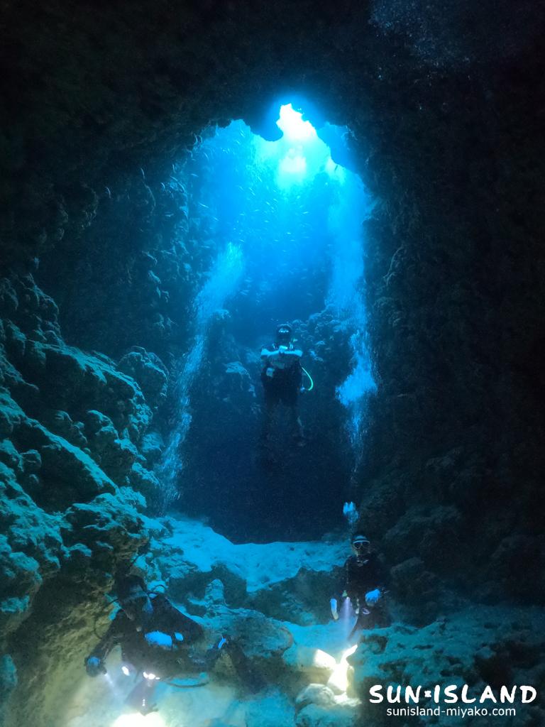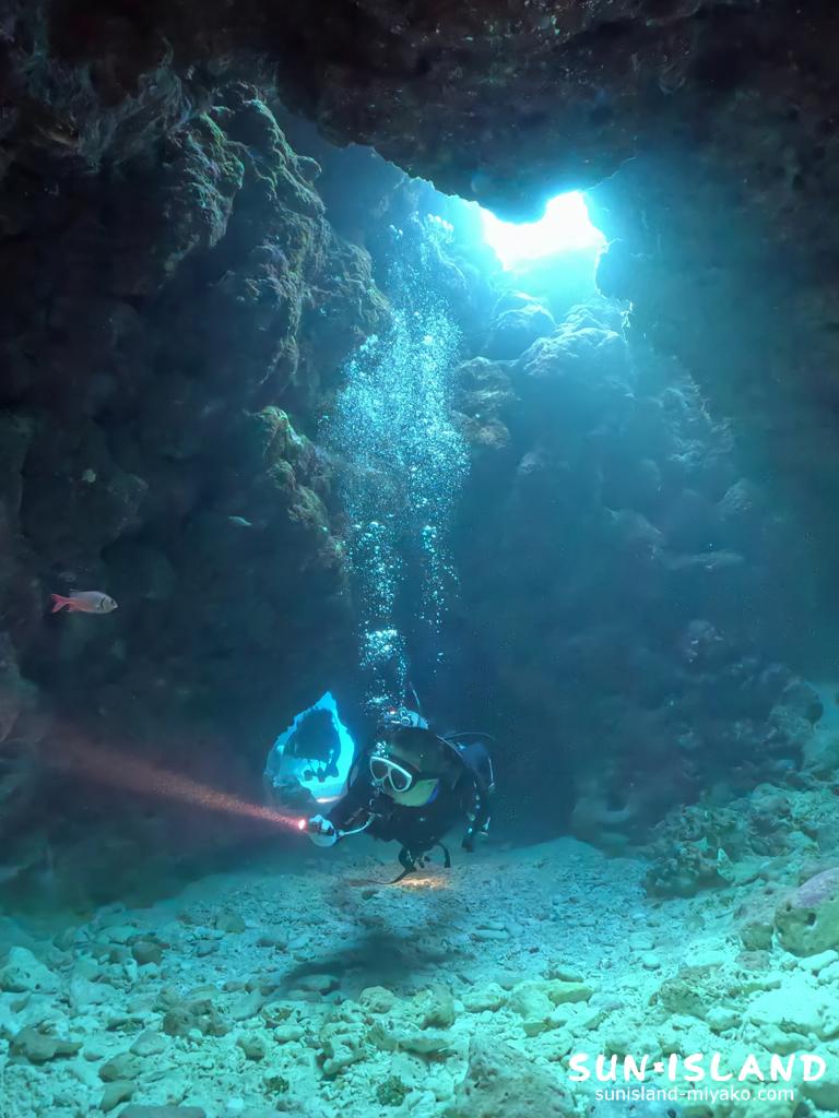 久しぶりのダイビングのKさん・Iさん、1ダイブ目でリフレッシュ完了され2ダイブ目から宮古島ダイビングと言えば『地形ダイビング』と、いうことで洞窟探検。