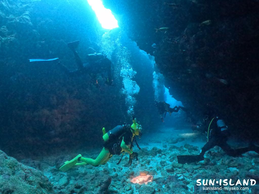 洞窟内での明暗のコントラストが見たい方にはオススメの下地島ダイビングスポット・ポイントのひとつ。