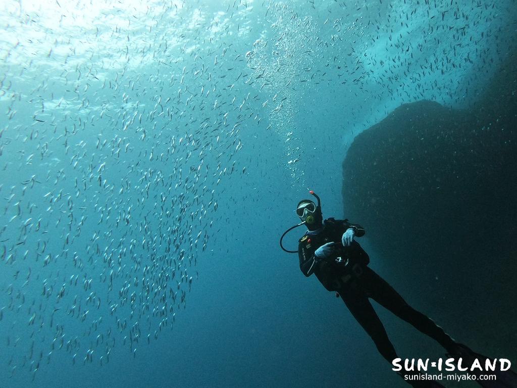 この時期の下地島はどこへ潜ってもキビナゴの群れに包まれる