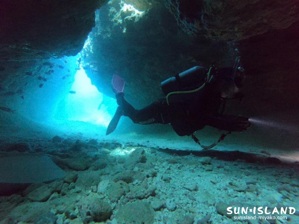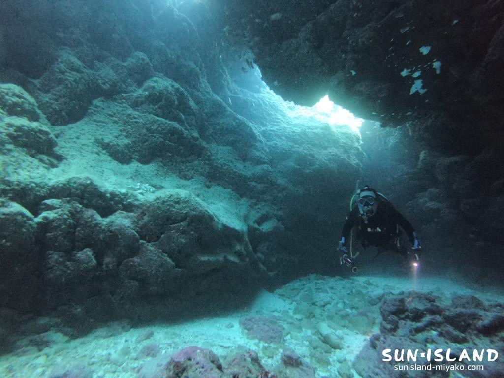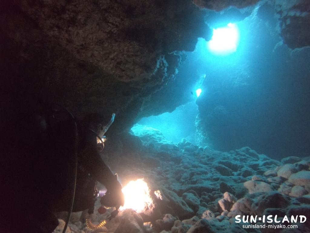 リピーターのKさんと光を求めて下地島の洞窟ポイントへ
