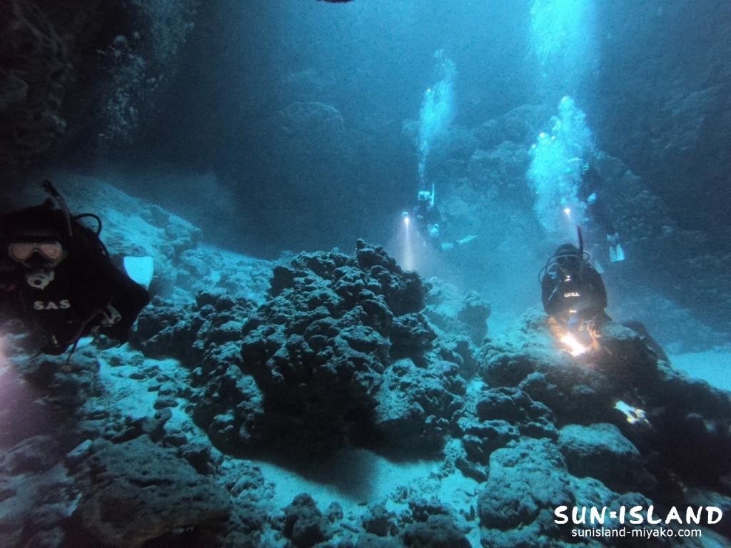 ただ、洞窟内に細かい砂が沈澱しているため、フィンで巻き上げた時にはもう視界が曇ります。笑