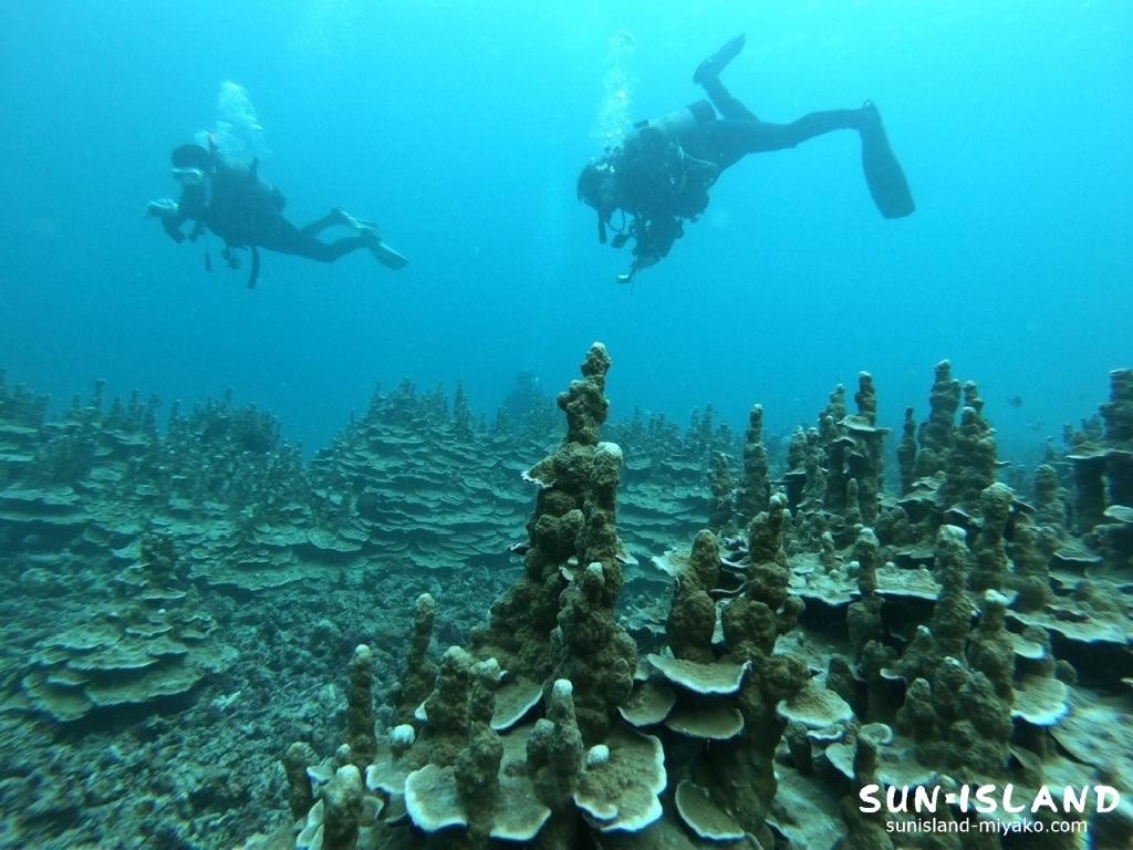 メインとなるパラオハマサンゴが光に照らされ、鮮明に目の前に広がり聳え立つ姿はまさに圧巻でしたよ〜!ここまで群生している場所は、宮古島の中ではこのポイントが唯一です。