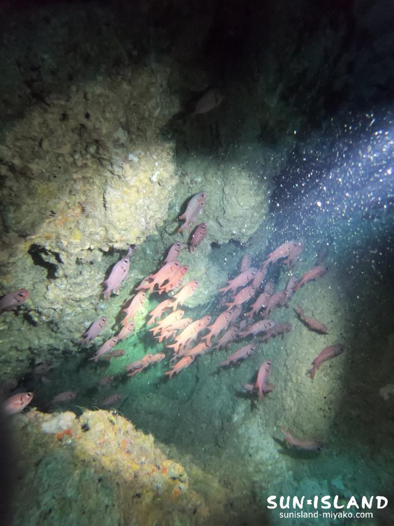 洞窟内には大量のアカマツカサや、ハタンポの群れがいて見応え抜群ですね。
