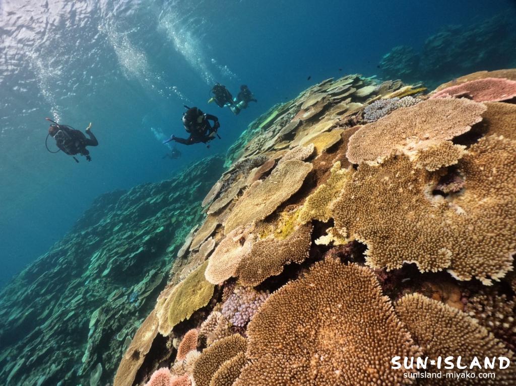 最近宮古島ではサンゴの白化が進んでいますが、『サバ沖アウトリーフ』ではまだまだキレイなサンゴが見れそうで安心ですね。