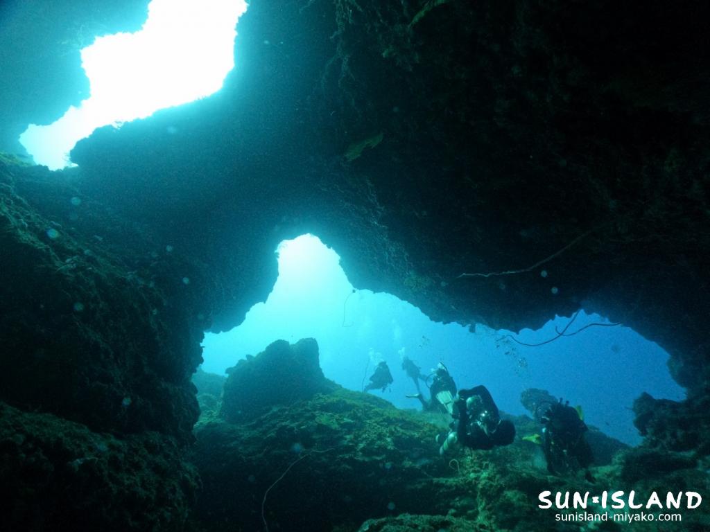 ゴツゴツとした琉球石灰岩に囲まれた空間は、まさにダイバーだけの秘密基地のようでワクワクしますよ。