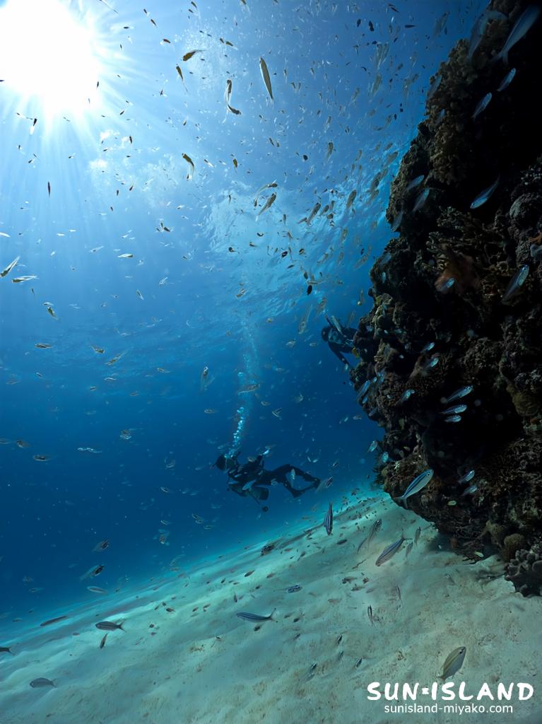 宮古島ダイビングスポット・ポイントのなかで、数少ないきめ細かい真っ白な砂地が広がり、開放感を存分に体感できる。