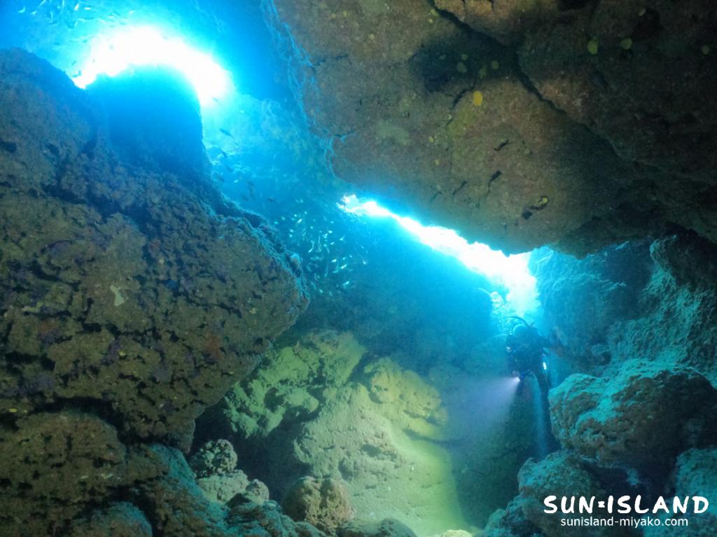 2つの洞窟とクレパスなど、1ダイブのなかで様々造形が楽しめる『ツインケーブ』