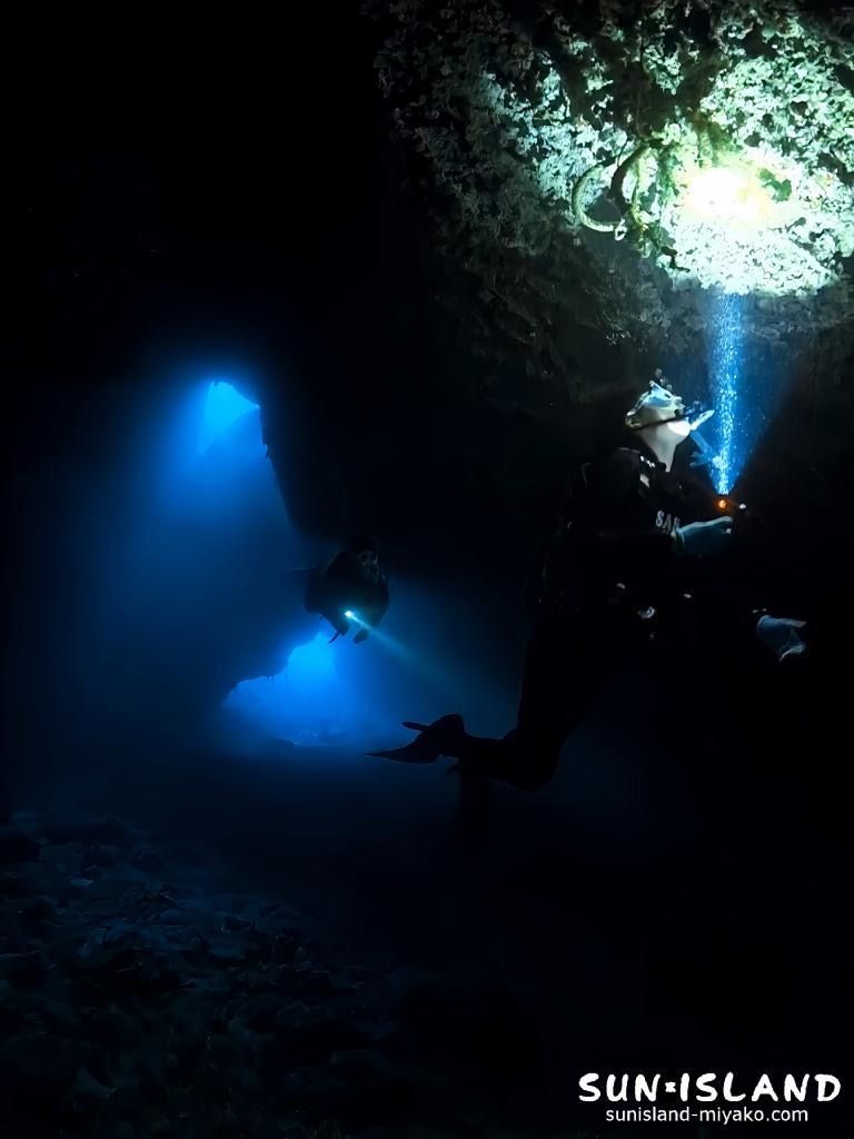 途中に亀裂などがないので本当に真っ暗。水中ライトで辺りを照らしながら進んでいる際は宝探しをしているような感じでとても探検気分、ワクワク感を味わうことができ、私自身もどうなっているんだろうとワクワクがとまりませんでした笑