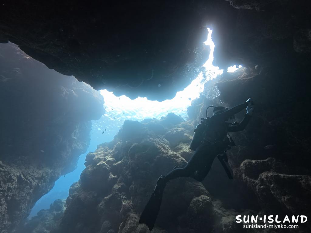 宮古島で冬のような冷たさ体感!?下地島の地形ダイビングで大迫力の海中探検 – 宮古島ダイビングショップ サンアイランド|エンリッチドエア(ナイトロックス)標準装備の地形プロガイド