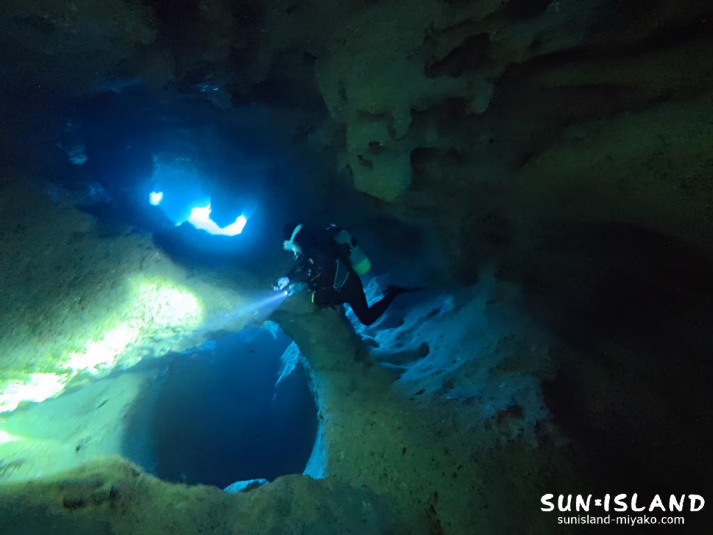 真っ暗な洞窟の先にある光の世界へ向かって泳ぐ感じ、冒険心をくすぐりますよね。
