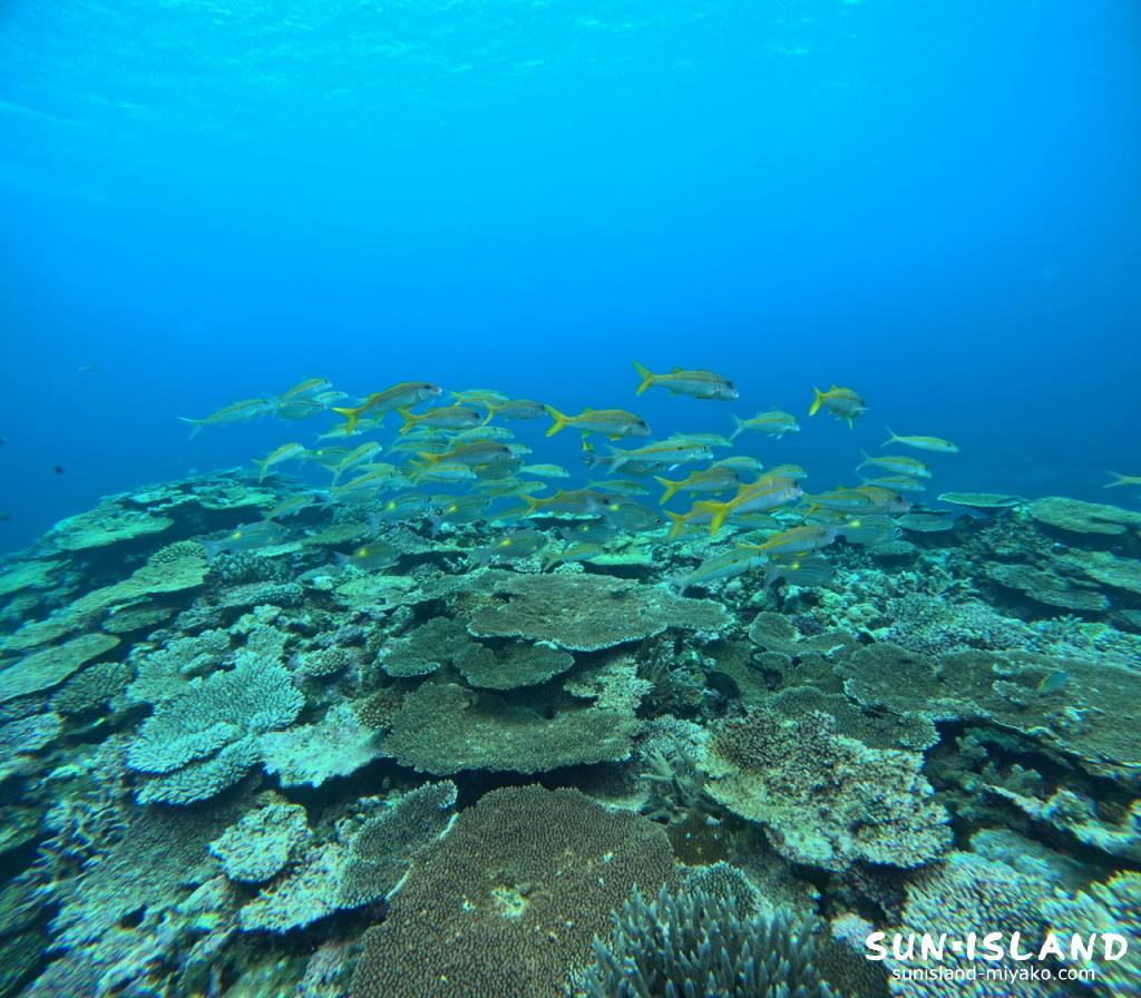 去年は海水温が高い日が続いて宮古島のサンゴも状態が悪くなってしまったのですが、『サバ沖アウトリーフ』はまだ状態が良いサンゴも残っていて、綺麗なサンゴとフイッシュウォッチングも楽しめました。